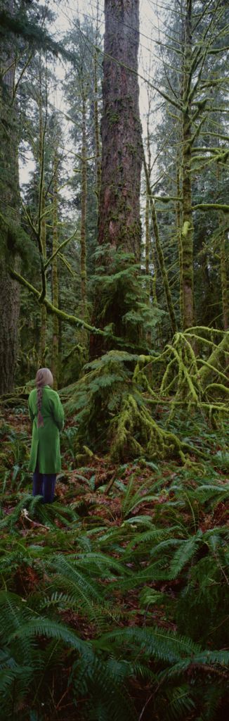 Emerald Coat in Green Forest, 2025, 40" x 116", archival pigment print with matte uv laminate